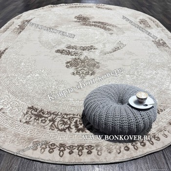 Классический ковер дизайн 104 Белый с бежевым Овал 5.0 Классический ковер дизайн 104 Белый с бежевым Овал